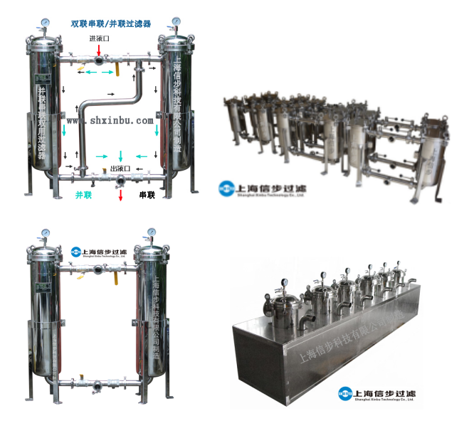 雙聯袋式過濾器,又叫雙聯切換過濾器,是一種由兩台及以上相同或不同結構的不鏽鋼過濾器並聯或串聯(lián)組成,******優點是可以雙(shuāng)聯切換24小時連續工作(zuò),需要時亦(yì)可拆(chāi)分單機使用。操作簡便,具有結構新穎(yǐng)合理、密封性(xìng)好、流通性強等特點。雙聯或多聯過濾器可以采用不同的過濾模式組合,其中以袋式過濾器為代表,其濾袋側漏幾率小(xiǎo),能準確保證過(guò)濾精度,並能快捷更換濾袋,過濾基本無物料消耗,使(shǐ)得操作成本降低。目前,我公司在雙聯過(guò)濾器過濾(lǜ)精度上已達到0.1um級,和國(guó)外產(chǎn)品同步,在過濾精度控製上屬領先水平,過濾精度範圍(wéi):0.1um-300um